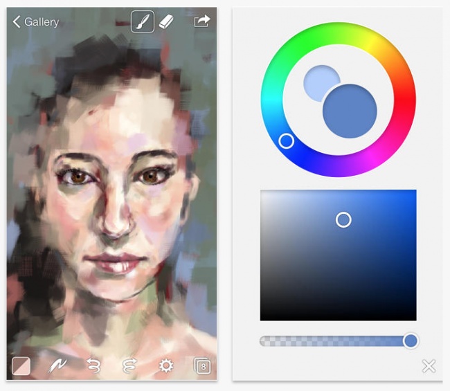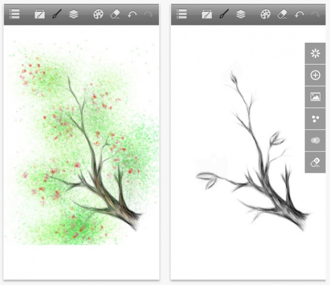 Щоб доопрацювати начерки, не обов'язково ретельно перемальовувати їх на папір. Цей додаток пропонує великий набір кистей, які підійдуть до будь-якого стилю виконання (акварель, олівцевий начерк, масло тощо).
