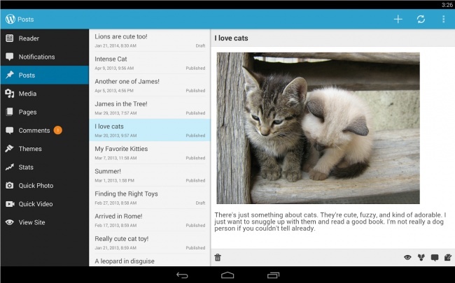 Дуже зручний додаток для ведення блогу і написання статей з мобільного пристрою. Дозволяє легко створювати і використовувати вміст, писати, редагувати і публікувати пости, перевіряти статистику і отримувати задоволення від читання кращих записів.
