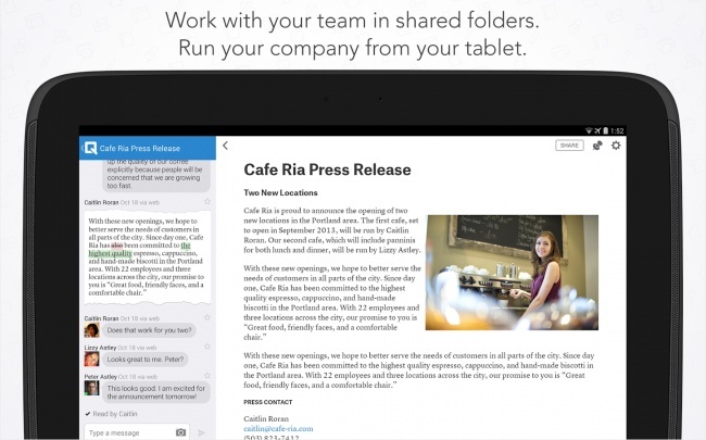Сучасний текстовий редактор, що дозволяє створювати документи на будь-якому пристрої, будь то телефон або звичайний планшетний комп'ютер. У Ліз документи і повідомлення теми об'єднуються в оновлень, схожі на чат, що дає можливість працювати разом з іншими користувачами.