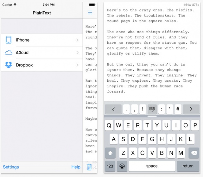 Деякі письменники воліють традиційні друкарські машинки. Погодьтеся, в цьому є щось надихаюче — порожній білий аркуш, справжній або цифровий. Додаток PlainText 2 дозволяє насолодитися чимось схожим завдяки своєму минималистичному дизайну. Екран чистий і абсолютно білий, а спеціально створена клавіатура дає доступ до всіх потрібних клавішах.