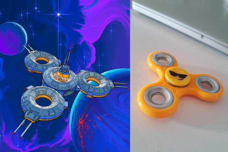 Точно так само, як ми обертаємо спиннер, корабель у космосі повинен постійно обертатися, але тільки для того, щоб створити штучну силу тяжіння.