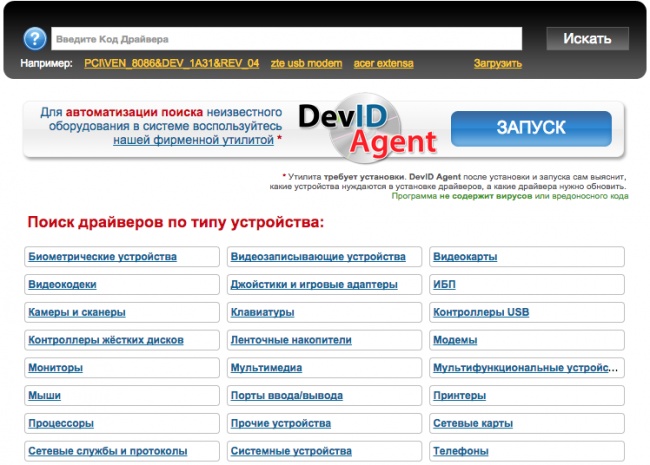 Тут ви можете знайти драйвер практично на будь девайс, що вимагає установки драйверів. Більш того, онлайн-сервіс сам визначить, які з пристроїв на вашому ПК потребують встановлення або оновлення драйверів і запропонує вам завантажити і встановити їх.