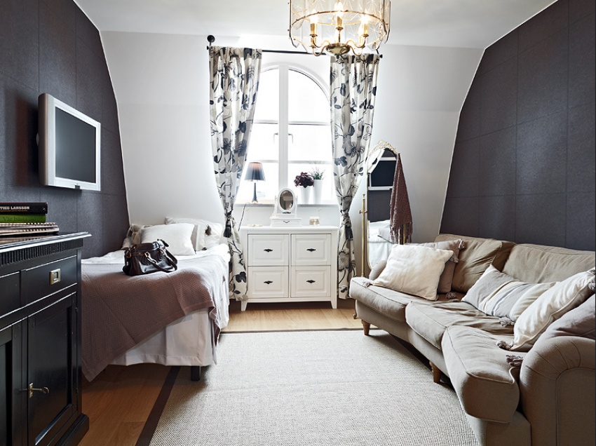 Однокімнатні квартири сьогодні дуже популярні — їх простіше придбати, продати або здати в оренду. Але є й інший нюанс: такі квартири дуже функціональні, і часто їх простір є і вітальнею, і спальнею, і їдальнею одночасно. Тут можна робити абсолютно різні речі: працювати, читати, дивитися телевізор, обідати, відпочивати, спати.