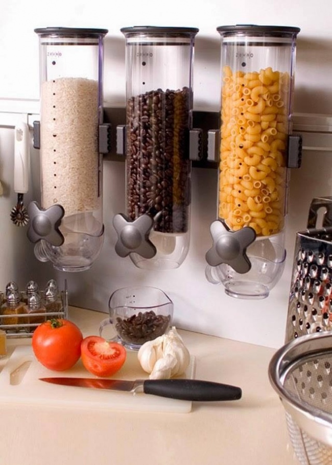 Ємності для зберігання круп, горіхів або кавових зерен з дозаторами.