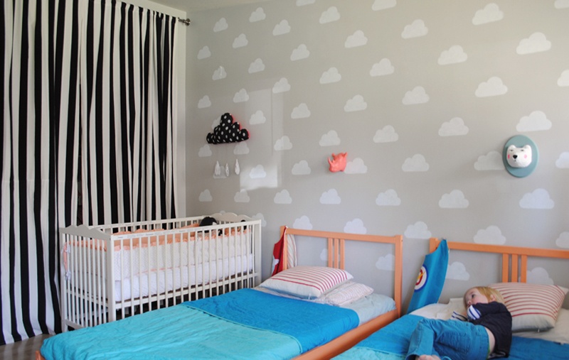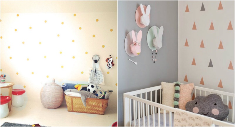 Простий трафарет у вигляді хмаринки, краплі або інший нескладної фігури перетворить стіни в дитячій в щось чарівне.
