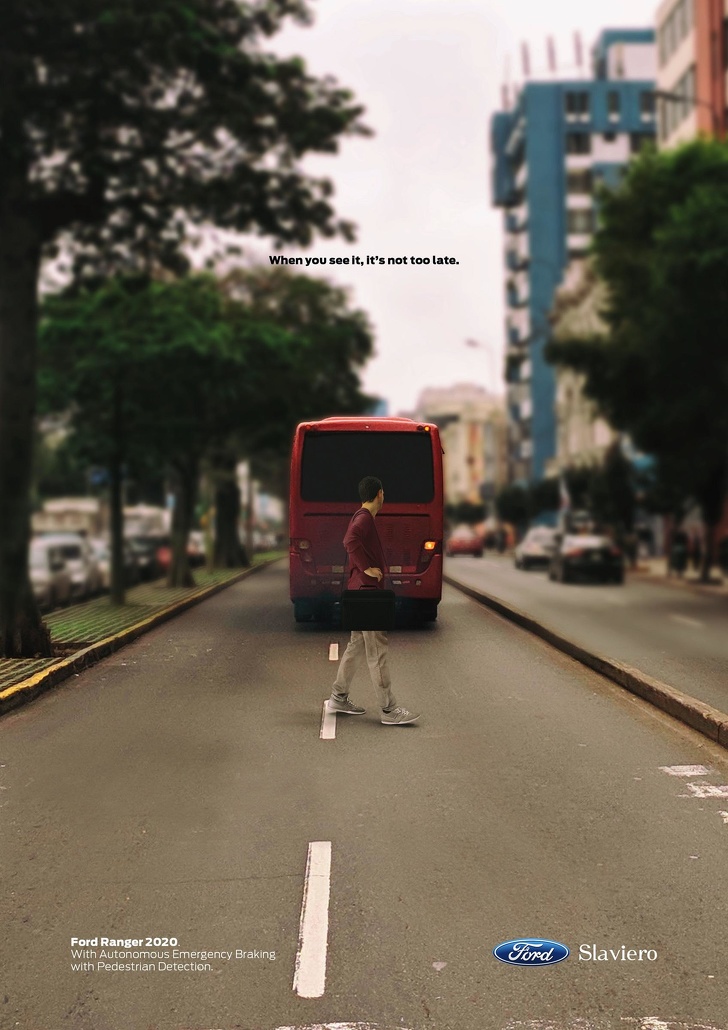 10. Ford: «Поки ви бачите це, ще не пізно. Ford Ranger — 2020 з автономним екстреним гальмуванням при розпізнаванні пішохода»