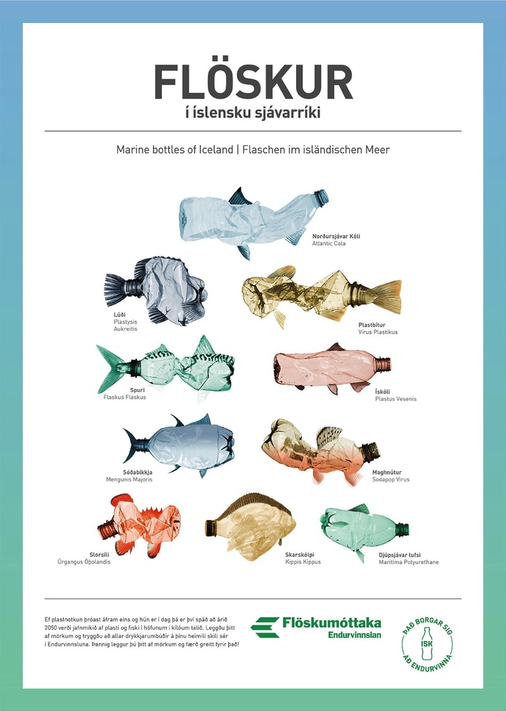 Інтегрована реклама, створена Aldeilis, Ісландія. В основу плаката покладені дослідження ООН, підтверджують, що при нинішніх темпах забруднення океанів в 2050 році водойми будуть містити стільки ж кілограмів пластику, скільки і риби.