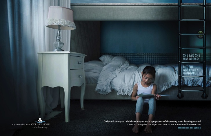 Соціальна реклама, покликана підвищити обізнаність населення про «вторинному утопленні». Слоган кампанії: «чи Знаєте ви, що ваша дитина може відчувати симптоми утоплення після виходу із води?»