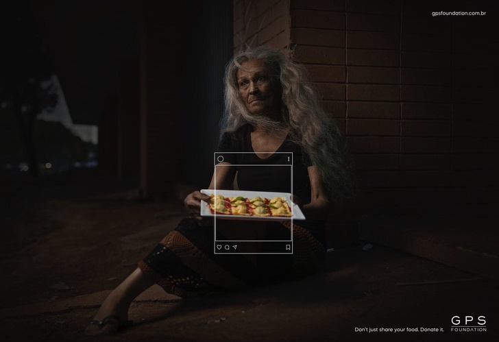 Друкована реклама гуманітарного фонду GPS, який допомагає незаможним бразильцям отримати одяг і продукти харчування.