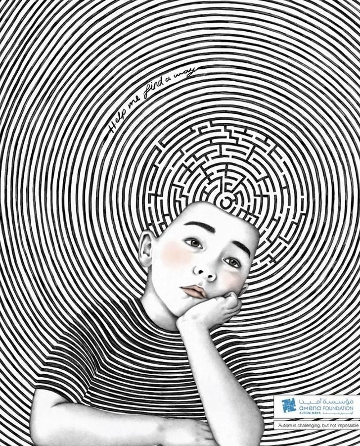 Інформаційна кампанія Центру аутизму Амена в Йорданії нагадує, що допомогти дітям з аутизмом складно, але можливо. Вона пройшла під девізом «Допоможи мені знайти вихід».