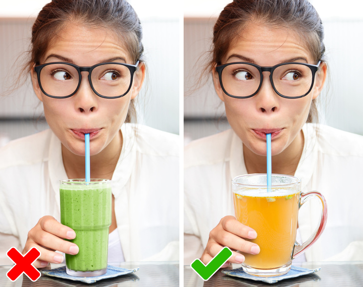 Свіжовичавлений сік руйнує зубну емаль, що містить багато цукру, в ряді випадків порушує нормальну роботу шлунка. Здорова альтернатива — це трав'яний або зелений чай, а щоб швидко прийти в себе після похмілля, краще випити склянку міцного м'ясного бульйону з кісток.