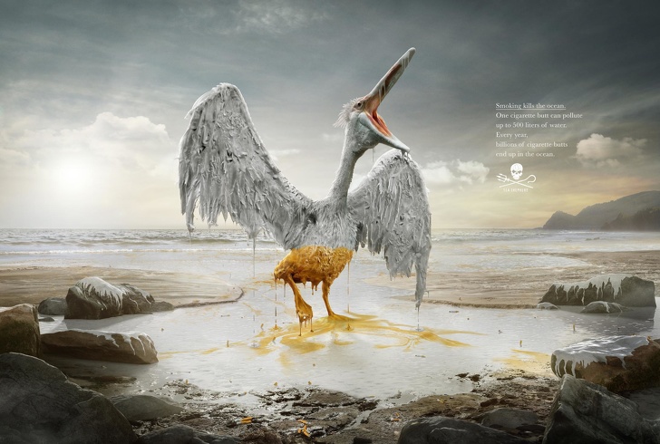 15. «Куріння вбиває океан. Один недопалок може забруднити до 500 л води. Щороку мільярди недопалків потрапляють в океан»