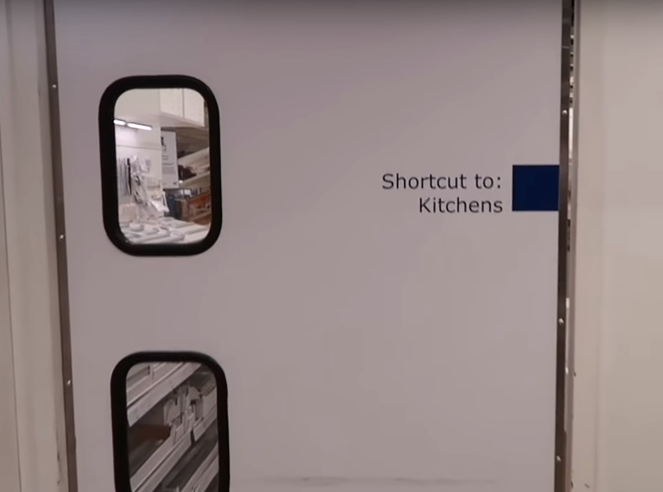 - За «декораціями» житлових кімнат ховаються двері швидкого доступу. Співробітники магазину намагаються не афішувати їх, але така двері дозволить перетнути магазин максимально швидко.