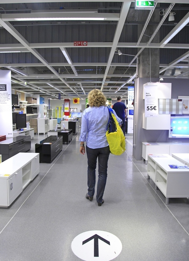 Лондонський архітектор Алан Пенн розповів, як це працює: складні лабіринти і відсутність простого прямого шляху змушують покупця знову і знову повертатися в одне і те ж місце. Через годину такого блукання людина буде дезорієнтований і забуде, навіщо він взагалі прийшов в IKEA.
