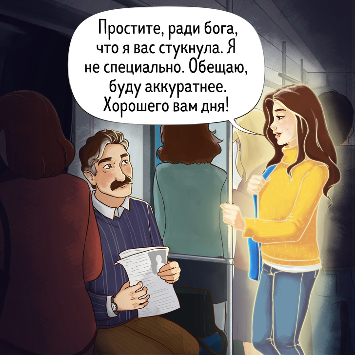 Ланцюжок доброти продовжувала працювати, і тепер у вічно зайнятої панянки звідки не візьмись з'явився час, щоб допомогти своєму колезі