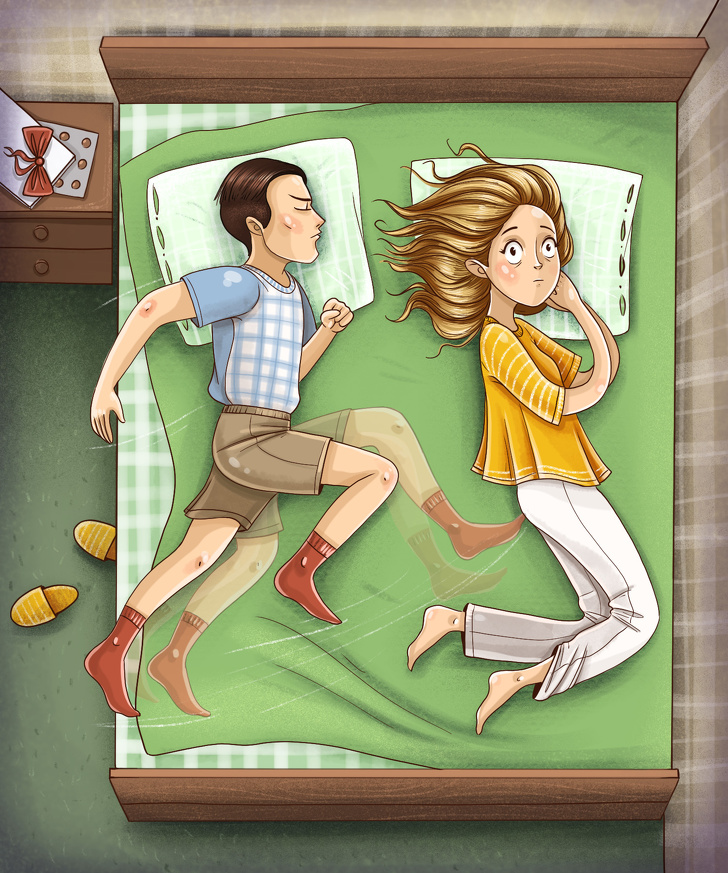 - Ваша спільна життя як коробка шоколадних цукерок — сповнена сюрпризів. І один з найнесподіваніших — це коли кохана посеред ночі раптом починає кудись бігти, когось кликати.