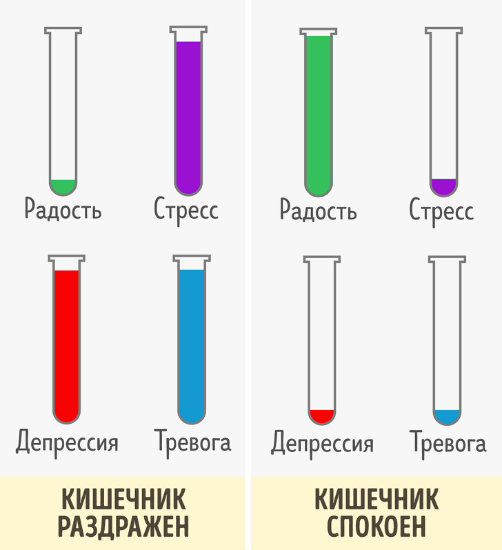 Регулює роботу кишечника «другий мозок» - энтеральная нервова система. Вона контролює вироблення 95 % серотоніну, завдяки яким ми відчуваємо радість. Якщо у кишечника виникають складності, це безпосередньо впливає на вироблення гормону щастя.