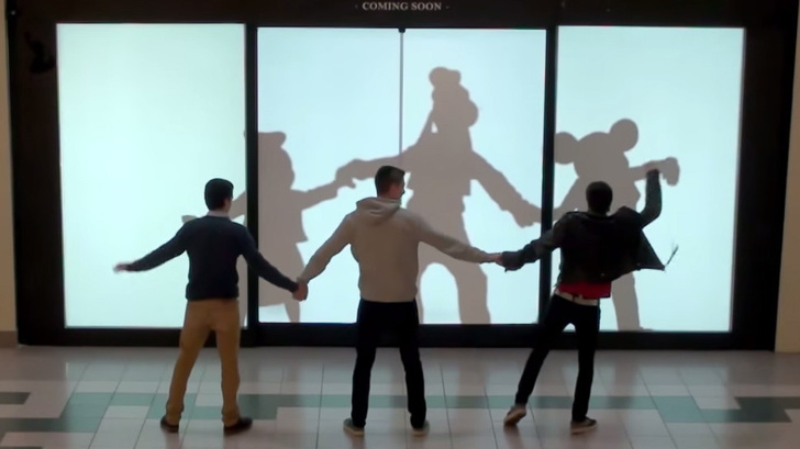 Компанія Disney вирішила пограти з відвідувачами одного з торгових центрів і встановила там світловий стенд, за яким ховалися діснеївські персонажі. Коли повз стенд проходили люди, герої мультиків спочатку повторювали їх руху, а потім починали грати з відвідувачами. Погляньте на веселе відео, де показано, як це було.