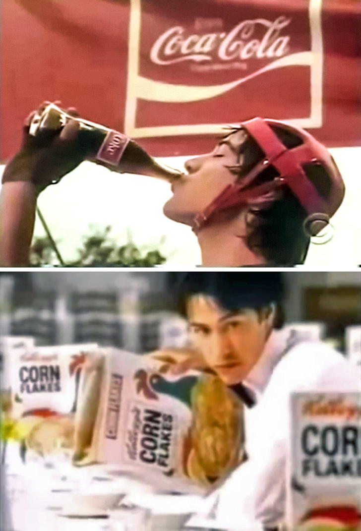 Хто б міг подумати, що Кіану Рівз в самому початку кар'єри теж підробляв в рекламі. Будучи маловідомим актором, Кіану встиг попрацювати з Coca-Cola, а також засвітився у ролику сухих сніданків Corn Flakes.