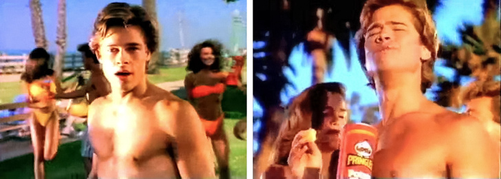 На самому початку своєї кар'єри Бред Пітт, судячи по ролику, був готовий на все, щоб роздобути улюблені чіпси в рекламі відомого бренду. Щоправда, тоді він був лише симпатичним блондином з хорошою фігурою, чудово втілили образ безтурботного серфінгіста.