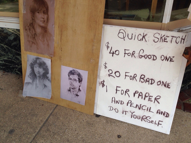 «Швидкий малюнок. $ 40 — за гарний малюнок, $ 20 — за поганий, $ 1 — за папір і олівець, щоб ви намалювали самі».