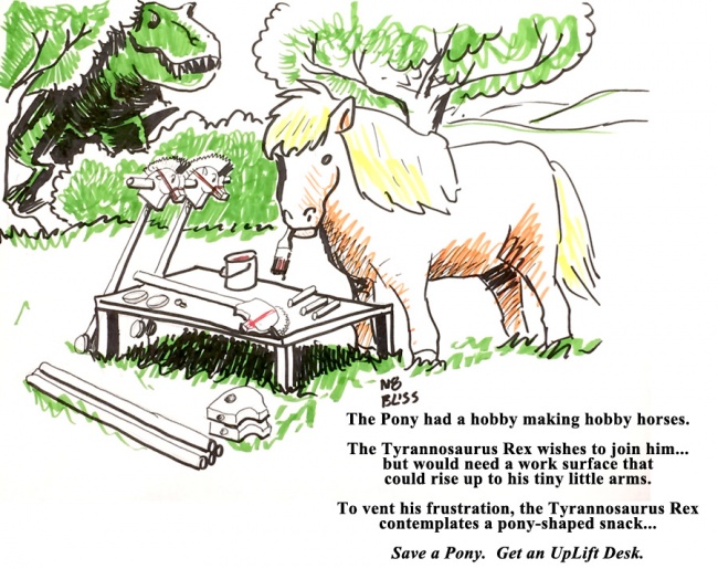 Користувач сайту Imgur під ніком Pavis0047 замовив стіл у компанії The Human Solution. Через затримки з поставкою стіл доставити йому не змогли. В якості компенсації розладнаному клієнту намалювали поні з тиранозаврів, як він сам жартома попросив у листі.