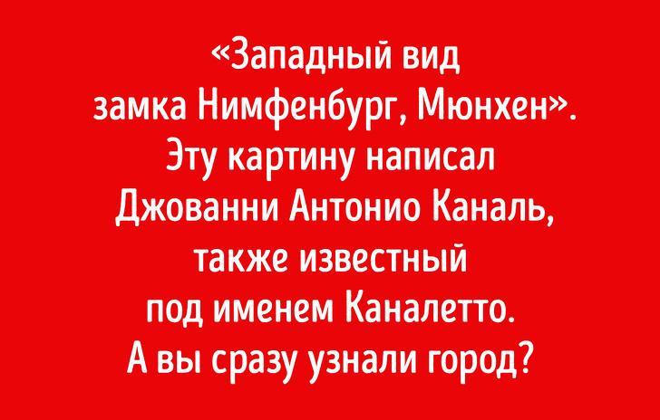 Social.org.ua пропонує пройти невеликий тест і вгадати, який саме місто зображений на картинах відомих художників, щоб, «подорожуючи в часі», ви не заблукали. За кожну вірну відповідь додавайте 1 бал. Готові? Вперед!