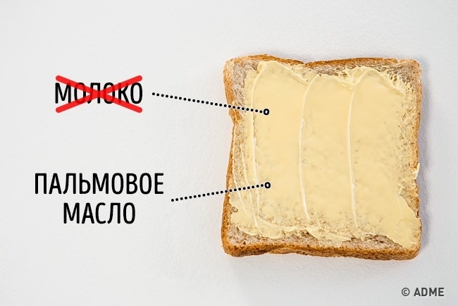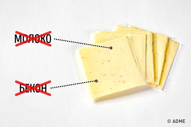 Більшість сирів (бутербродні, натерті або скибочками) насправді не завжди містять... сир. Щоб заощадити і спростити процес, деякі виробники замінюють молоко сироватковим білком або пальмовою олією. Такий товар вже буде не сиром, а сирним продуктом, але на етикетці про це не можуть написати.