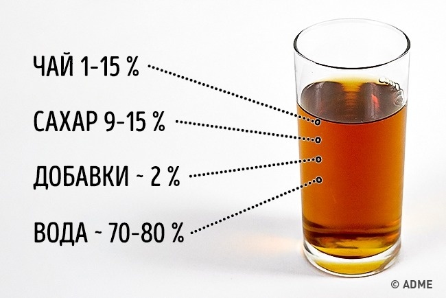 - Якщо ж у складі зовсім немає слів «екстракт чаю», значить, в пляшці звичайна вода, яку зробили схожою на чай з допомогою різних добавок.