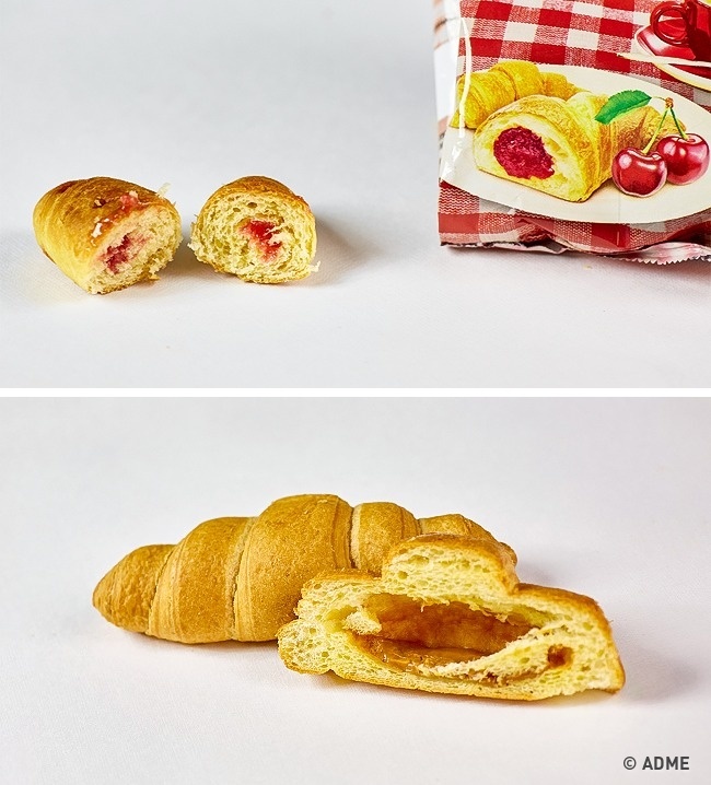 Різні кондитерські вироби з начинкою, такі як круасани або булочки, наповнюються начинкою лише наполовину, а то і зовсім по краях шляхом уприскування. Зрозуміло, виробники роблять це з метою економії. А покупець, сподіваючись отримати багато смачної начинки, як зображено на упаковці, залишається практично ні з чим.