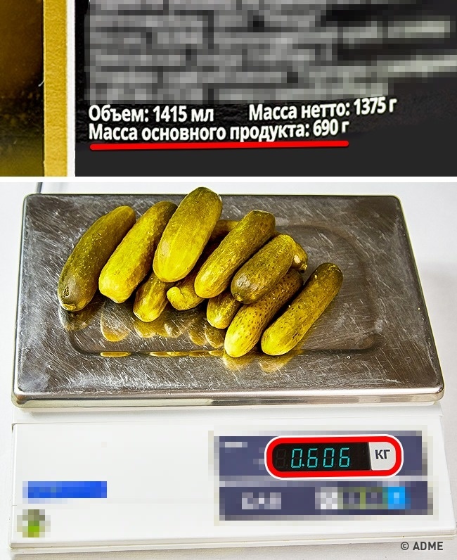 На товари, які продаються в банках, як правило, великим шрифтом зазначаються загальна вага товару і трохи нижче — маса основного продукту. При виробництві та упаковці товару дозволяється відхилення від основної маси на певне значення (для кожного продукту різне). І це відхилення частенько в меншу сторону.