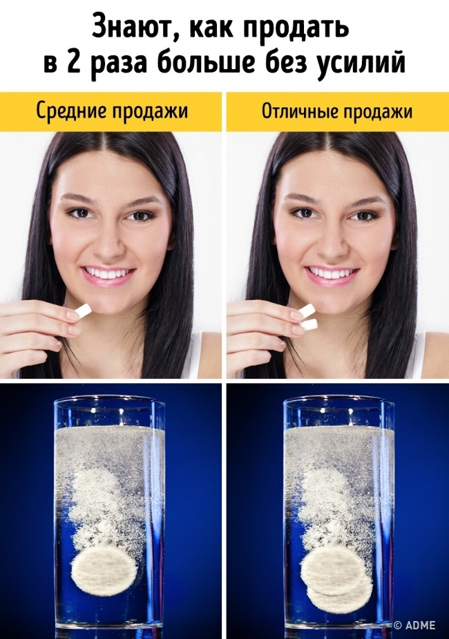 Ви замислювалися, чому в рекламі жувальної гумки за раз беруть по 2 пастилки? Це придумано спеціально, щоб люди думали, що це правильний спосіб жувати жуйку. Так витрата збільшиться в 2 рази, а виробники зможуть продати більше. Та ж історія спостерігається з деякими ліками і вітамінами.