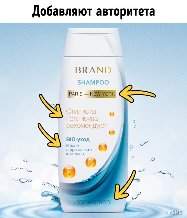 Виробники завжди намагаються додати товару «вагомості». Наприклад, повідомити, що в складі шампуню міститься екстракт екзотичних квітів, навіть якщо його там одна крапля на цистерну. Та й користь квітів для волосся — питання спірне.