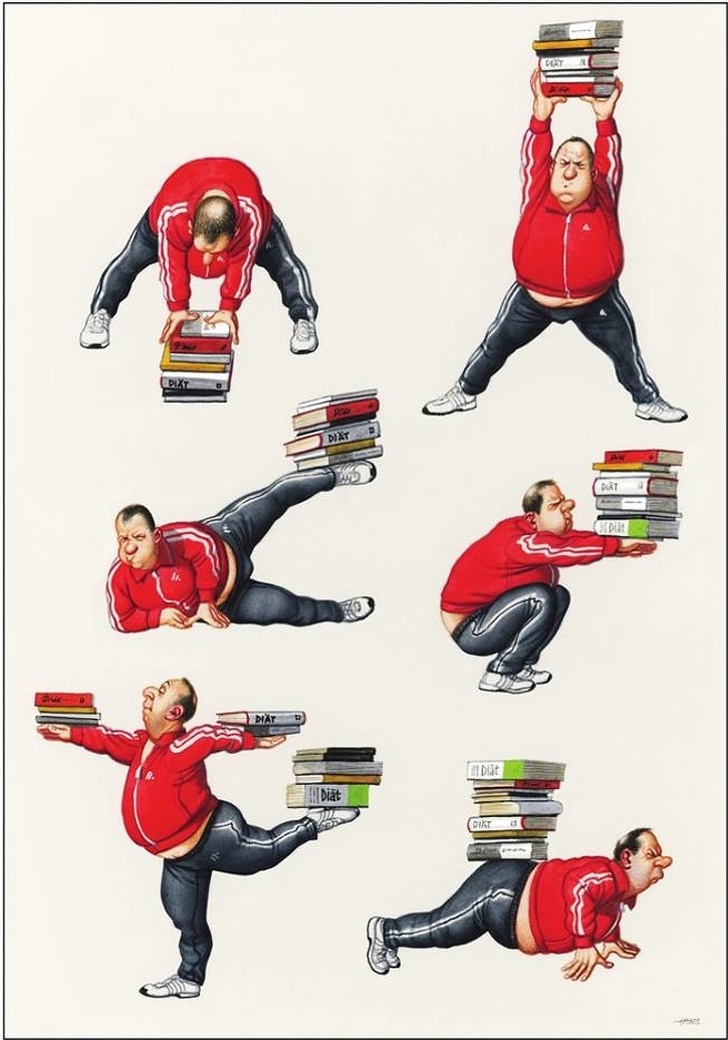 Австрійський художник Герхард Хадерер відомий своїми чесними і досить сміливими карикатурами. У щомісячному коміксі MOFF., який видає Scherz & Schund Fabrik, ось вже протягом кількох років він безстрашно публікує гострі ілюстрації, які буквально кричать про пороки і проблеми сучасного суспільства.