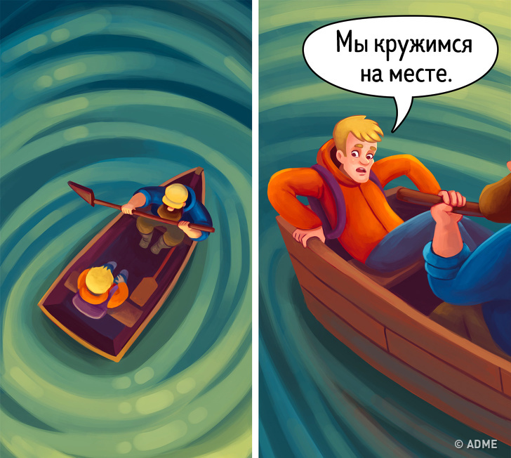 Спочатку його рухи були легкими і ледь помітними — човен зрушилася з місця. Потім він почав все сильніше і сильніше гребти, але ми ні на метр не наблизилися до берега