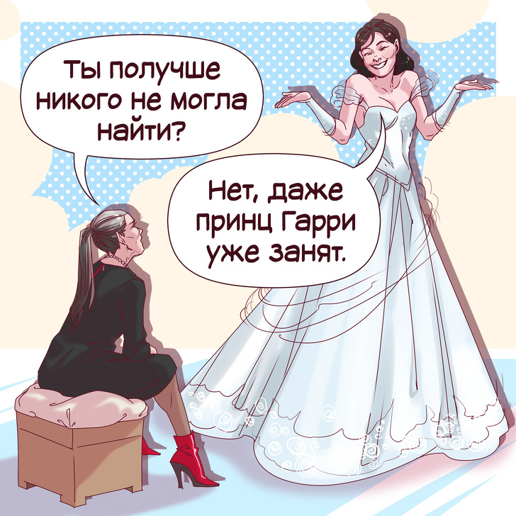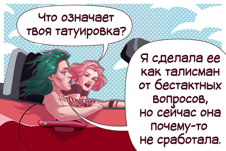 Людську природу не змінити, і тому вони завжди будуть цікавитися не тільки своїм життям, але і вашої. Напевно у вас вже були моменти, коли хотілося витягти чужий ніс із своїх справ, але не завжди знаходилися правильні і влучні слова. Сьогоднішні 13 ілюстрацій допоможуть вам бути словесно озброєними, якщо хтось спробує зіпсувати вам настрій своїми надокучливими питаннями.