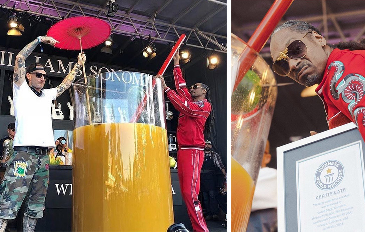 У 2018 році американський репер Снуп Дог приготував найбільшу порцію коктейлю в світі. Тим самим музикант увічнив своє ім'я на сторінках знаменитої книги рекордів. Для приготування коктейлю Paradise знадобилося 315 л джина, 156 л абрикосового бренді і майже 106 л апельсинового соку. Ємність з отриманим напоєм прикрасила гігантська трубочка, рожевий парасольку і кавун, нанизаний на меч.