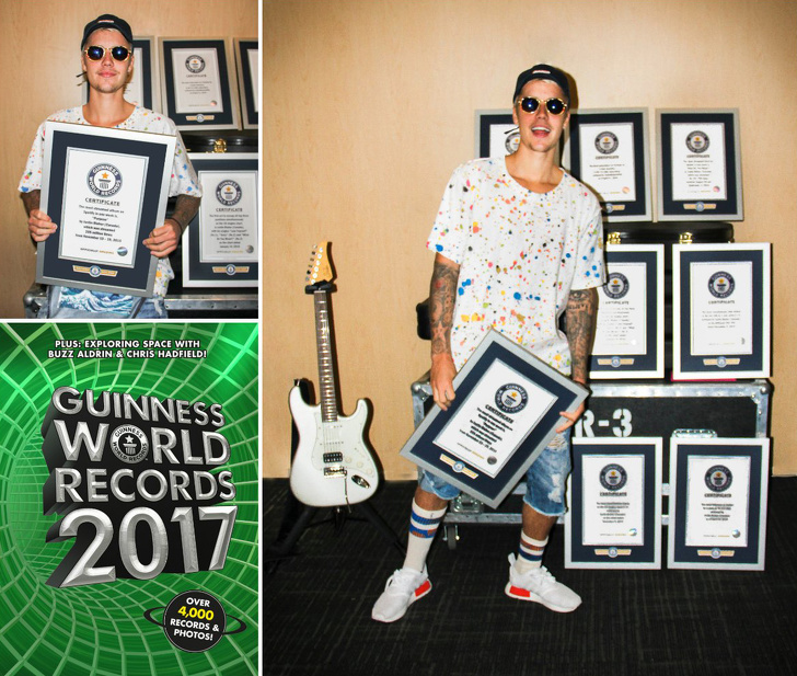 Ім'я цього відомого канадського поп-R&B-співака 14 разів потрапляла в Книгу рекордів Гіннесса. Примітно, що, крім таких нагород, як «Самий популярний трек тижня на Spotify», «Самий проглядається канал на YouTube», Джастіну Біберу до недавнього часу належав своєрідний антирекорд: відео співака набрало найбільшу кількість дизлайків. Його пісня «Baby» не сподобалася майже 11 млн користувачам популярного відеохостингу. Правда, недавно рекорд був побитий роликом, опублікованими офіційними каналом YouTube в кінці 2018 року (16 млн дизлайків).