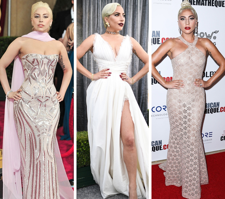 Повторюємо за Леді Гагою: руки на талію, лікті трохи вперед, одна нога виставлена. Як підсумок отримуємо тонку талію, вузькі плечі і довгі ноги.