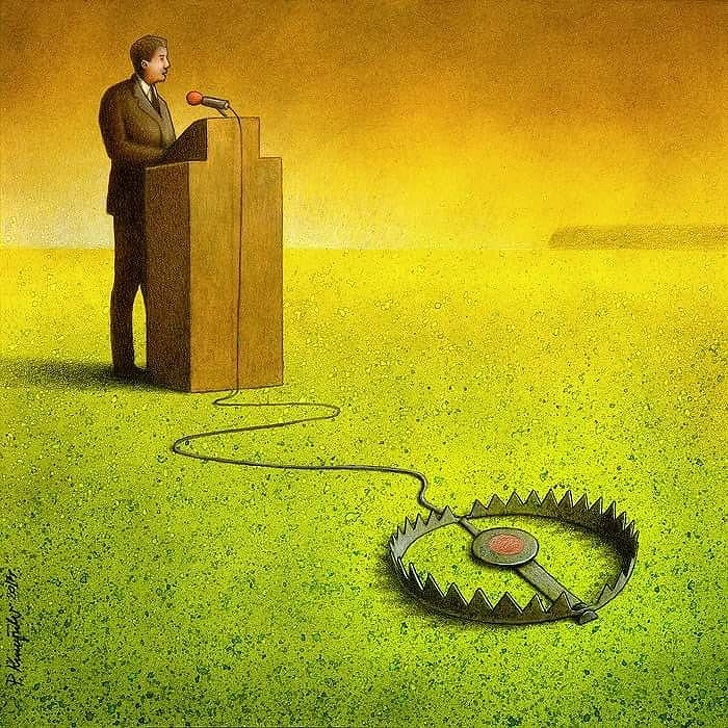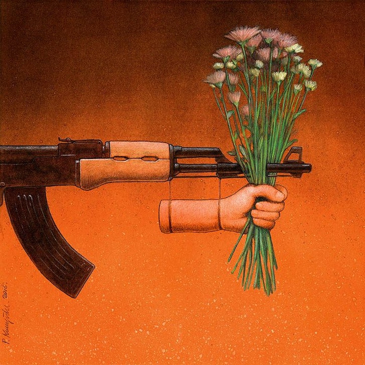 Ми в Social.org.ua неодноразово ділилися самими яскравими роботами цього художника. Пропонуємо вам знову зануритися в обличающе-правдиве мистецтво Павла Кучинського.