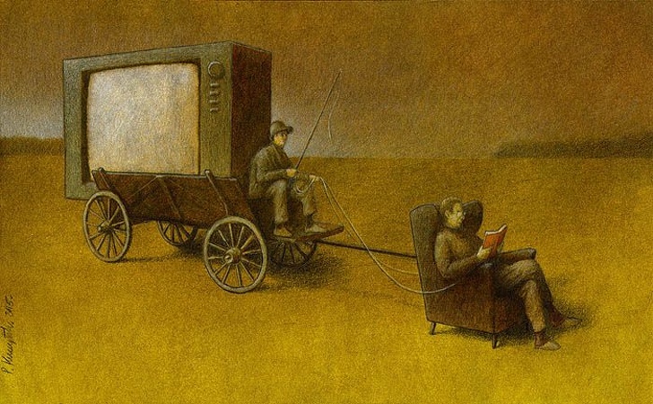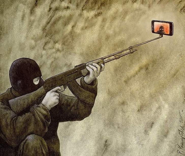 Поляка Павла Кучинського (Pawel Kuczynski) називають одним з найбільш шанованих карикатуристів у світі. В своїх роботах він викриває сучасні вади, серед яких залежність від гаджетів, політизованість всіх сфер життя й незрозуміла жорстокість. Павло створює свої шедеври рідкої аквареллю і кольоровими крейдами для малювання на папері. У художника є безліч шанувальників по всьому світу, а в його офіційній групі налічується понад 500 тис. абонентів.