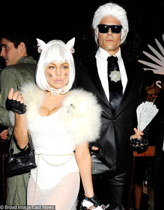 Співачка і її чоловік здивували нас в 2015 році, коли постали в образі Карла Лагерфельда і його улюблениці - кішки Шупетт.