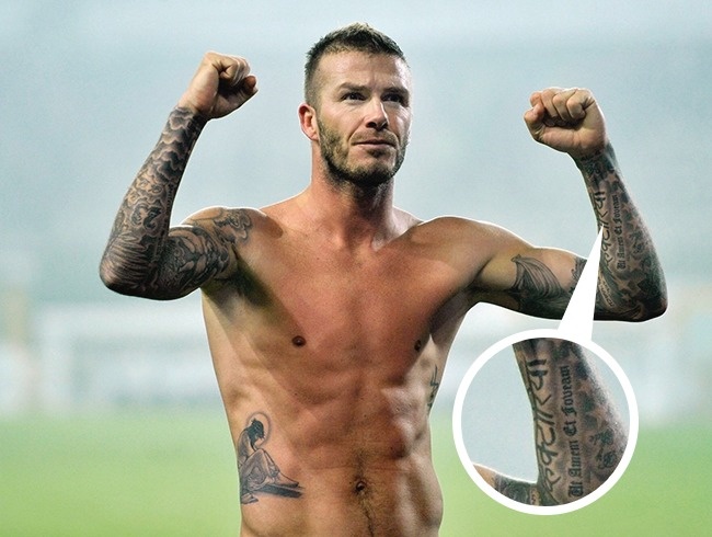 Здавалося б, вже він-то повинен знати про татуювання все... Але на жаль! Ім'я власної дружини Вікторії на санскриті Девіду набили з помилкою. У фінальному варіанті тату красується «ВиХтория», але це, напевно, той самий випадок, коли головне — увага.
