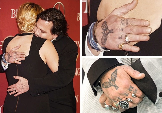 Якщо ви раптом почнете зустрічатися з цим красенем, не просіть його робити тату на вашу честь, інакше це може плачевно закінчитися. Про це знає не з чуток не тільки Вайнона Райдер, але і ще одна колишня Деппа — Ембер Херд. Татуювання на пальцях лівої руки актора SLIM («струнка»), присвячена Херд, після скандального розставання якимось чином перетворилася в SCUM, що в перекладі з англійської означає «погань». Жорстко, однак.