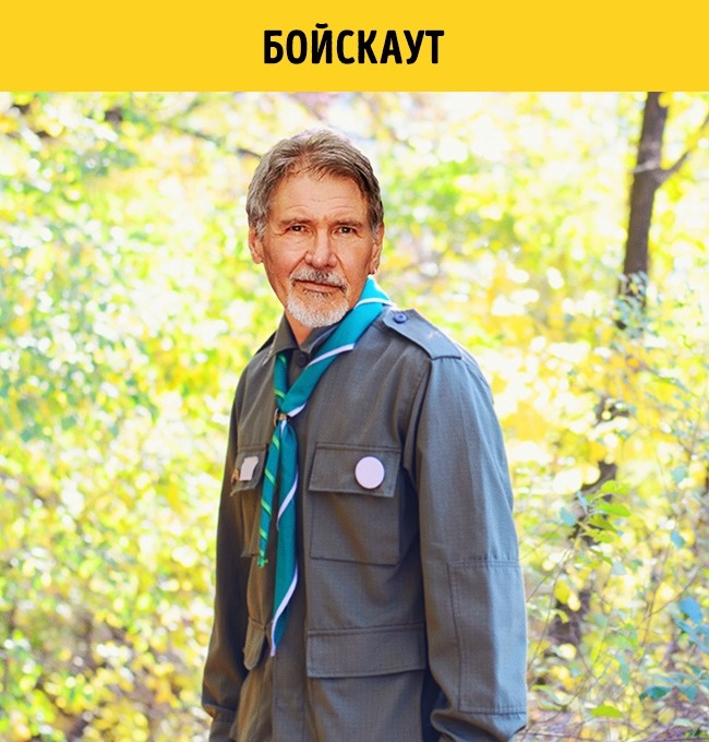 До зйомок у кіно Харрісон Форд був вожатим у таборі бойскаутів. Оскільки багато чоловіків вважають скаутський рух справою всього свого життя, ми можемо припустити, що і Форд зараз міг би носити костюм з нашивками і вчити дітей виживання в умовах дикої природи.