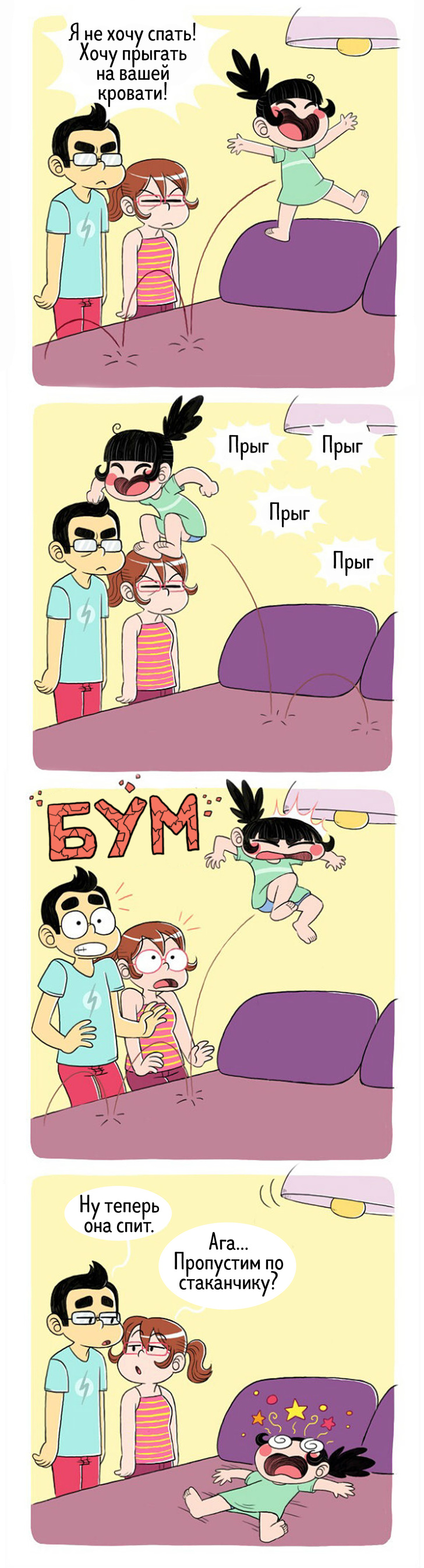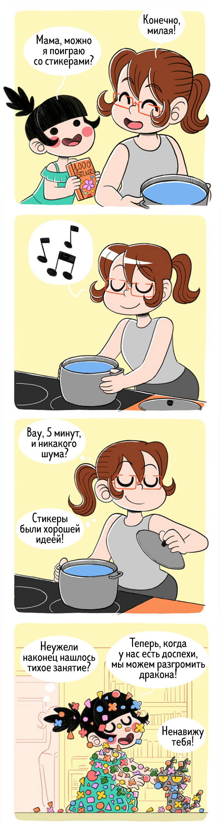З маленькими дітьми не завжди буває просто, зате нудьгувати своїм батькам вони вже точно не дають. Сумніваєтеся? Давайте разом подивимося комікси, які художниця з Монпельє Іля (Yllya) малює про свою сім'ю. Багатьом з нас ці малюнки можуть нагадати ситуації з власного життя. А ще в них відображається безцінний батьківський досвід, в якому ви неодмінно відкриєте щось корисне для себе.