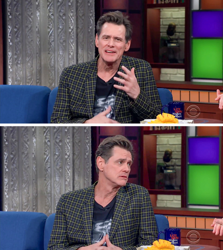 Фрагмент з інтерв'ю Джима Керрі телеведучому Стівену Кольберу на його «Пізньому шоу».