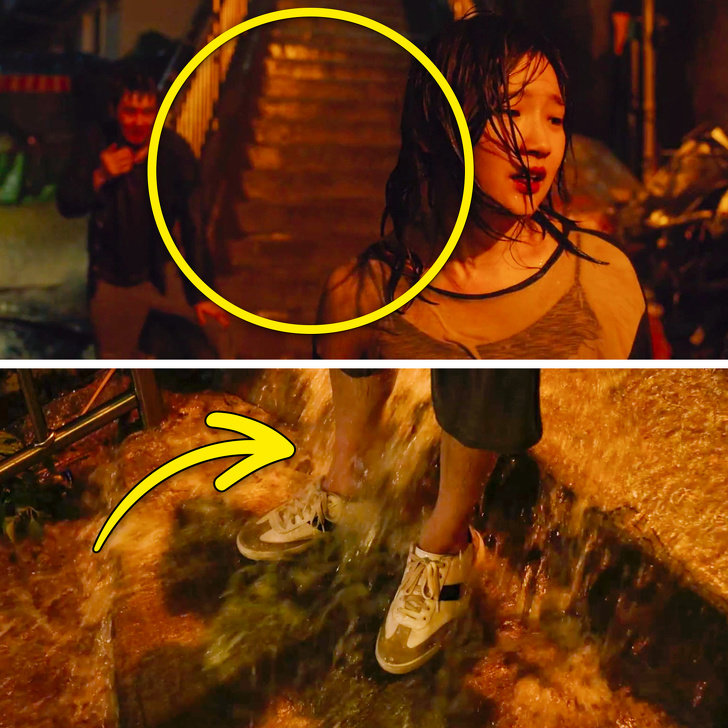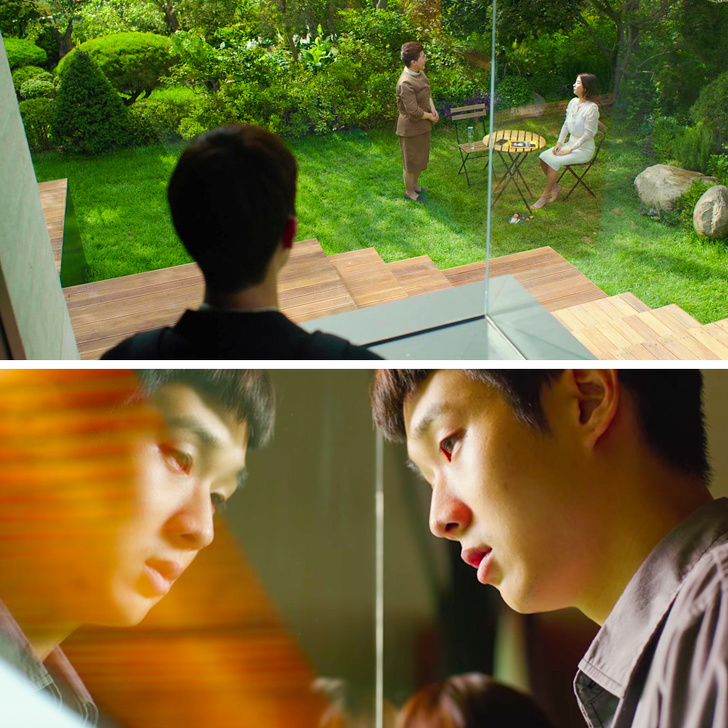 В фільмі дуже багато сходів і ступенів. Будинок Паків не просто знаходиться в хорошому районі міста, він розташований на височині, на яку спочатку потрібно піднятися і тільки потім піднятися в будинок з кількох сходових прольотах. Будинок бідняків Кімів, як ми пам'ятаємо, — в напівпідвалі, але навіть щоб потрапити в їх район, потрібно спуститися по безлічі міських сходів. Так творці фільму підкреслюють, що соціальний стан героїв не просто розрізняється — це буквально вершина і низ соціальної драбини. Сходи і відсилають до щаблях суспільної ієрархії, за якими намагаються видертися бідняки.