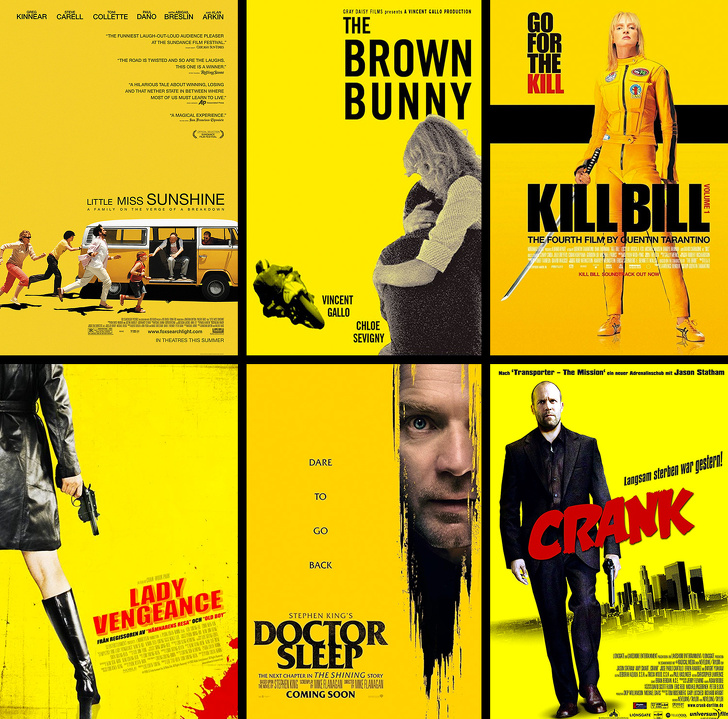 Жовтий — це не тільки колір сонця, радості і позитиву. У поєднанні з чорним він є попереджувальним кольором. Не дарма ж попереджувальні знаки представляють з себе чорні символи на жовтому фоні («Небезпечно. Радіоактивні речовини», «Небезпека ураження електричним струмом» та багато інших). Згадайте хоча б забарвлення таких жалких комах, як оса, бджола, джміль. Їх забарвлення транслює: «небезпечно!» Такий же підхід несуть і подібні постери — вони привертають увагу, а глядач підсвідомо зчитує сигнал про те, що героям фільму загрожує якась небезпека.