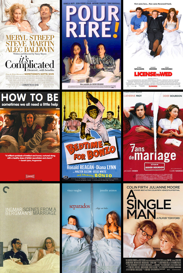 © It's Complicated / Universal Pictures © Pour rire! / Madragoa Filmes © License to Wed / Warner Bros. © How to Be / IFC Films © Bedtime for Bonzo / Universal Pictures International © 7 ans de mariage / Groupe TF1 © Scener ur ett äktenskap / Sveriges Television © UNIVERSAL PICTURES / MOSAIC MEDIA GROUP / Album / EAST NEWS © A Single Man / The Weinstein Company